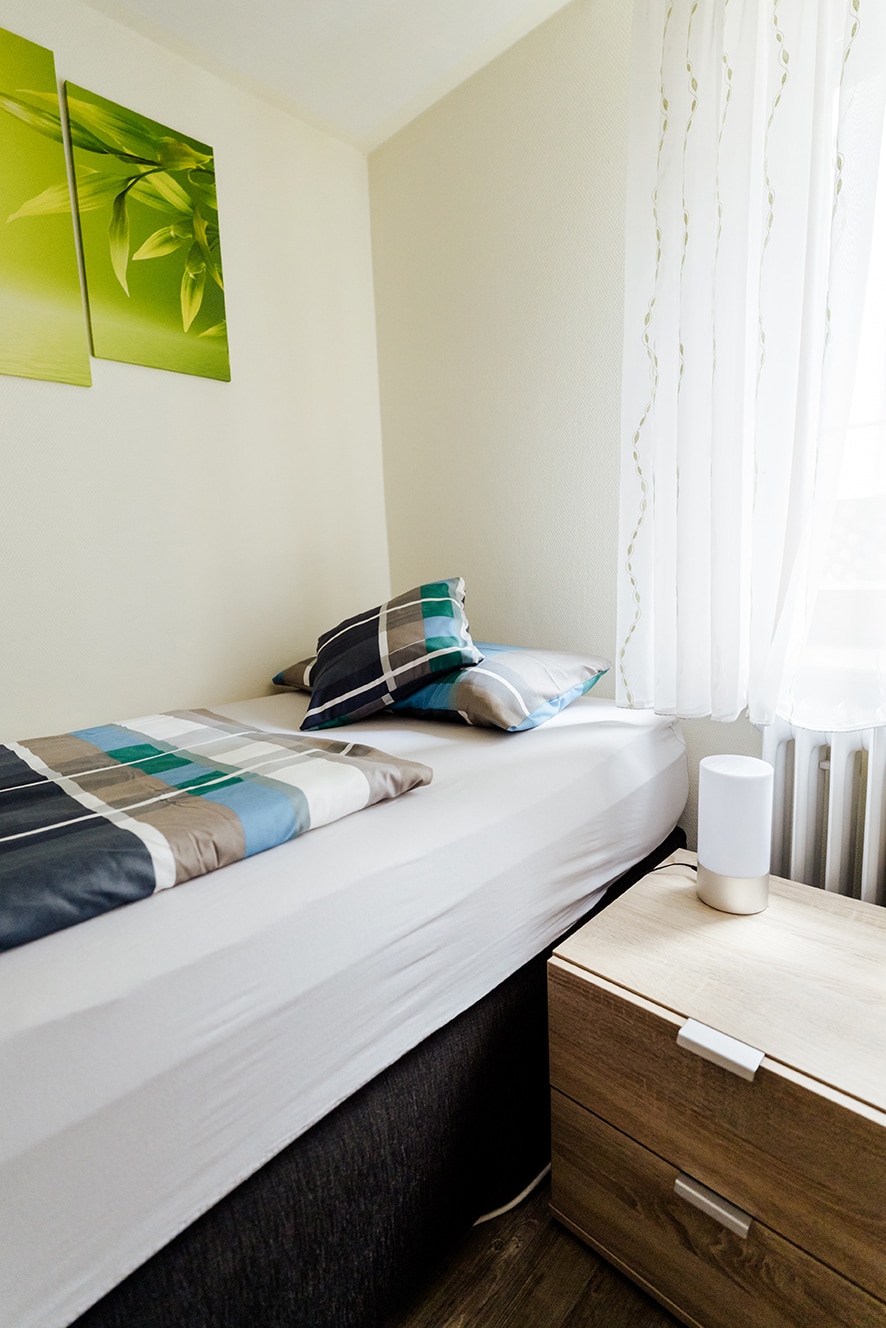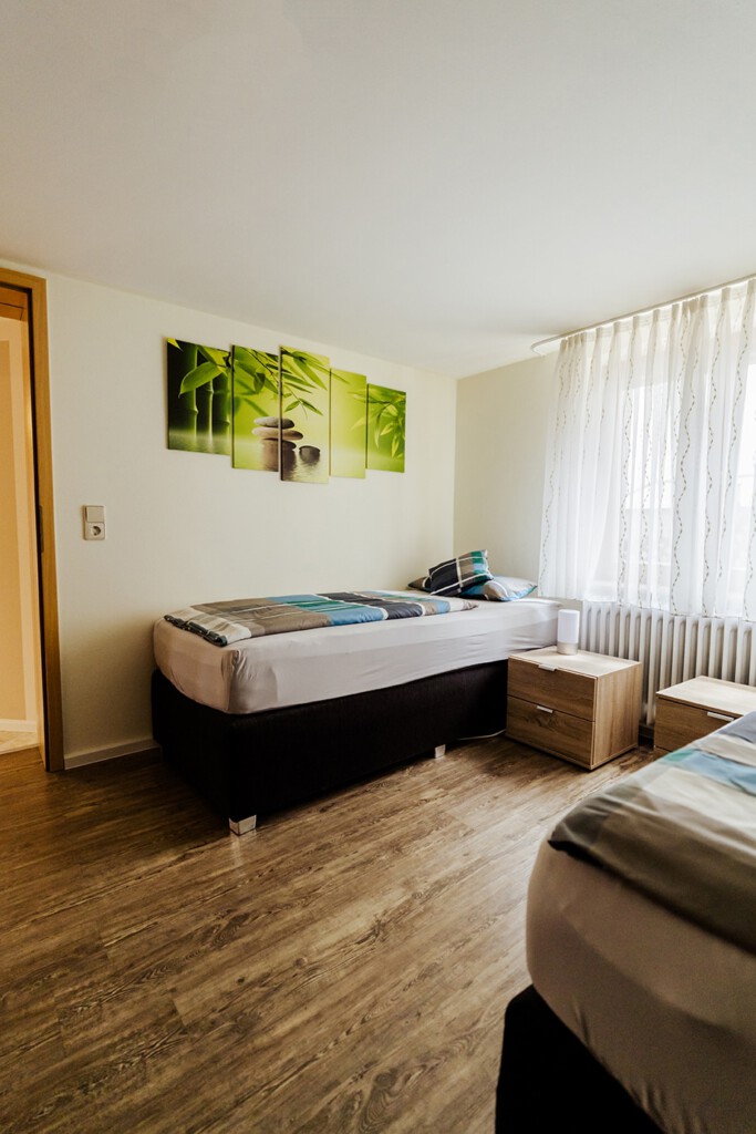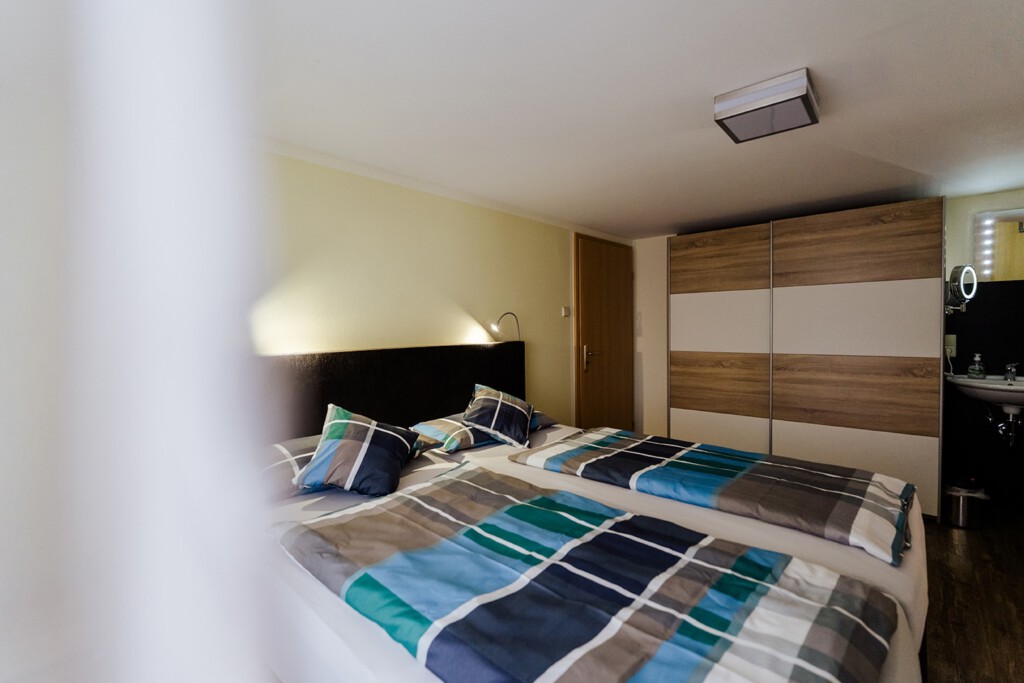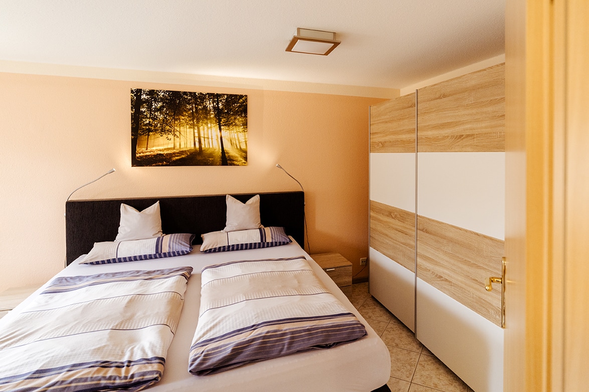 Beide Schlafzimmer sind mit hochwertigen Boxspringbetten und großen Schiebetürenschränken ausgestattet.