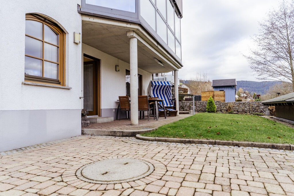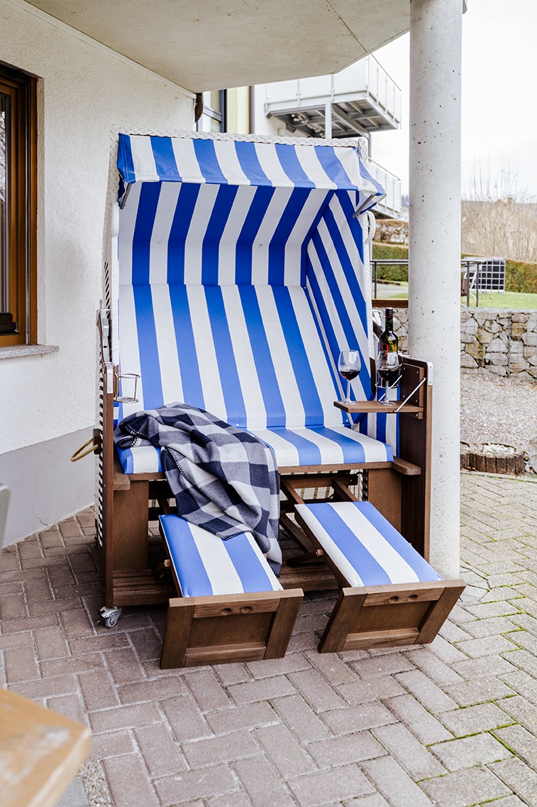 Direkt an den überdachten Freisitz schließt eine großzügige Liegewiese an, auf der Sie den Panoramablick auf die umliegenden Schwarzwaldgipfel in Ruhe genießen können. Für entspannte Stunden steht Ihnen außerdem ein Strandkorb zur Verfügung – ideal, um nach einer Wanderung die Sonne zu genießen oder einfach die Stille der Natur auf sich wirken zu lassen. Außerdem stehen eine Tischtennisplatte und eine Dartscheibe zur Verfügung.